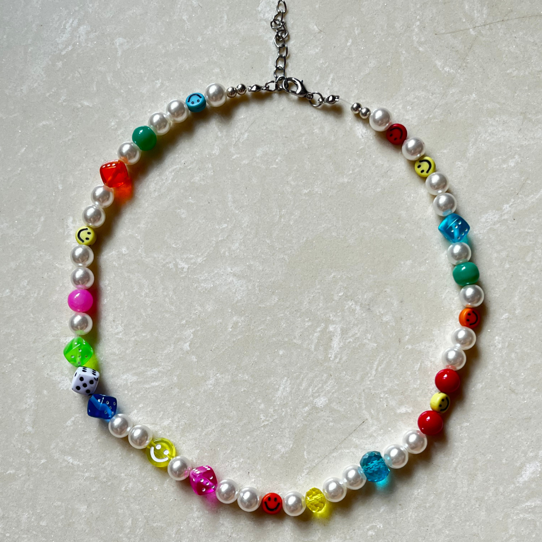 Crystals, Glass Pearls, Acrylic Beads, Colorful Smiley and Dice Beads.