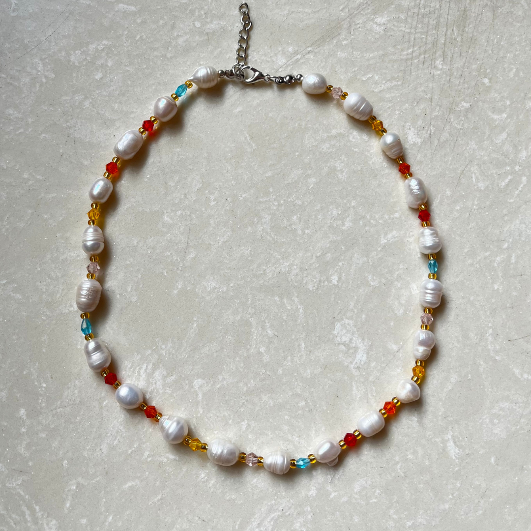Lua Necklace : Colorful Crystals and Pearls: Celestial Elegance!