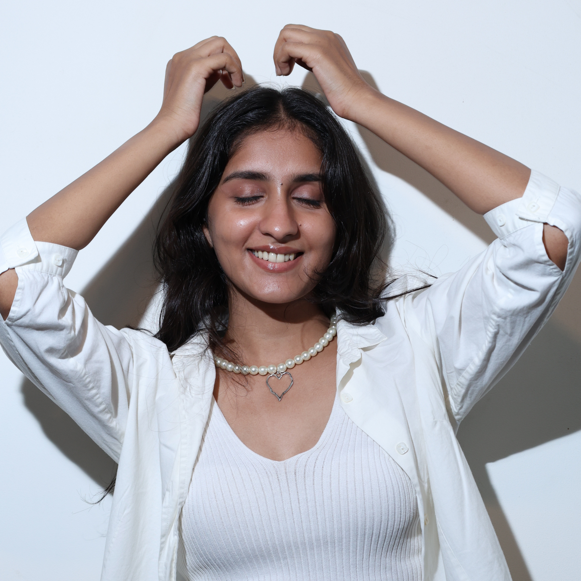 Glass Pearls with a custom silver heart pendant.