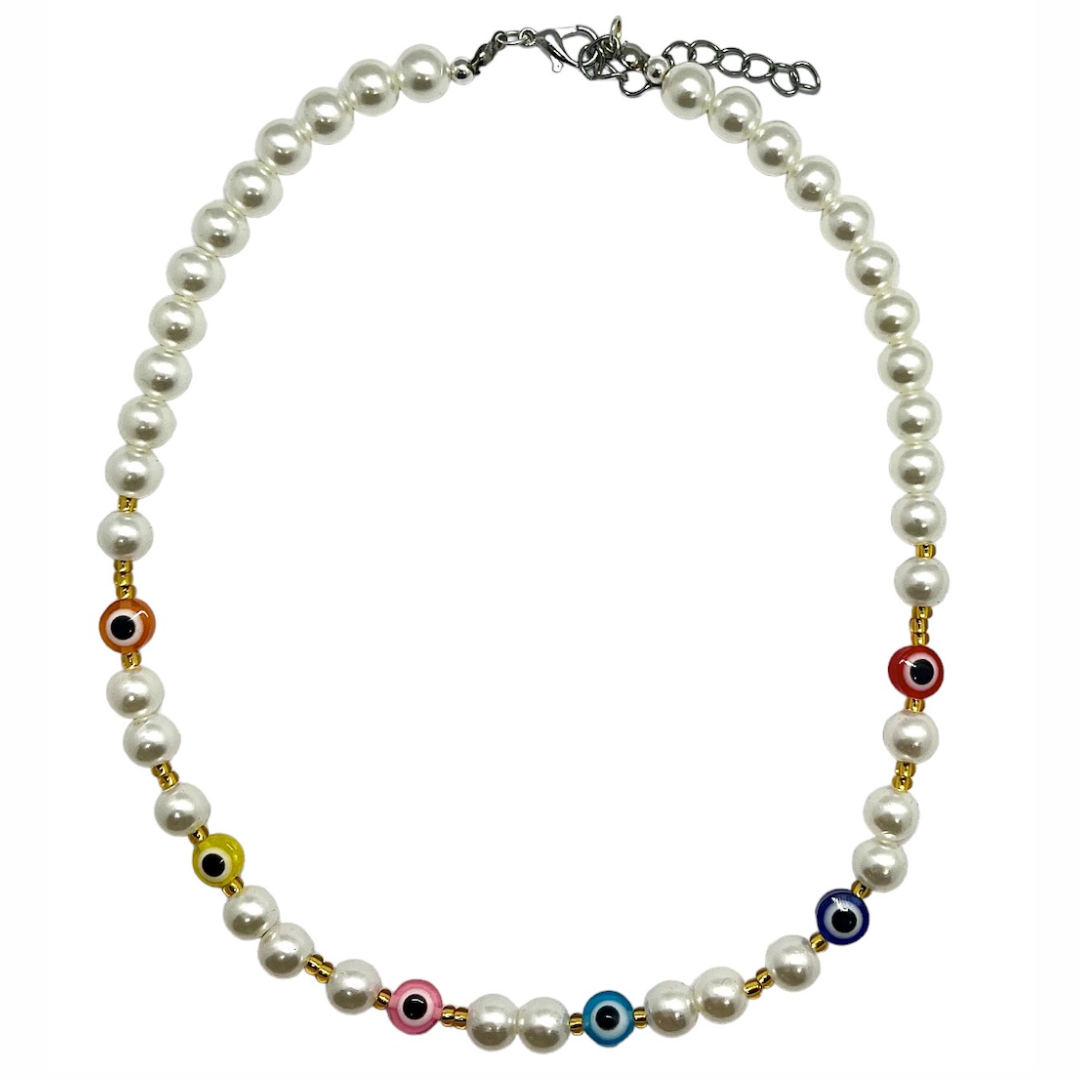 Pearl Beads, Circular Golden Seed Beads , Multicoloured Evil Eyes.